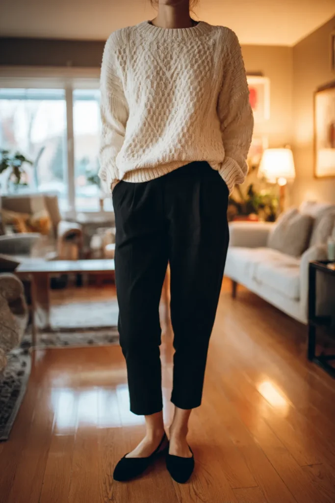 Cozy Knit Sweater With Tailored Black Trousers