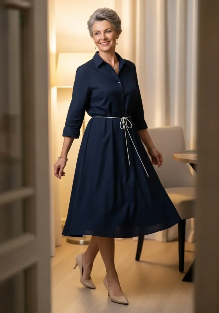 Navy Shirt Dress With a Clean Feminine Silhouette