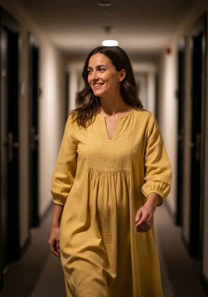 I love this type of dress because it feels charming without needing any extra layers. The embroidery adds that sweet handcrafted touch and the yellow shade always lifts my mood. It is the perfect sunny choice for a holiday service.