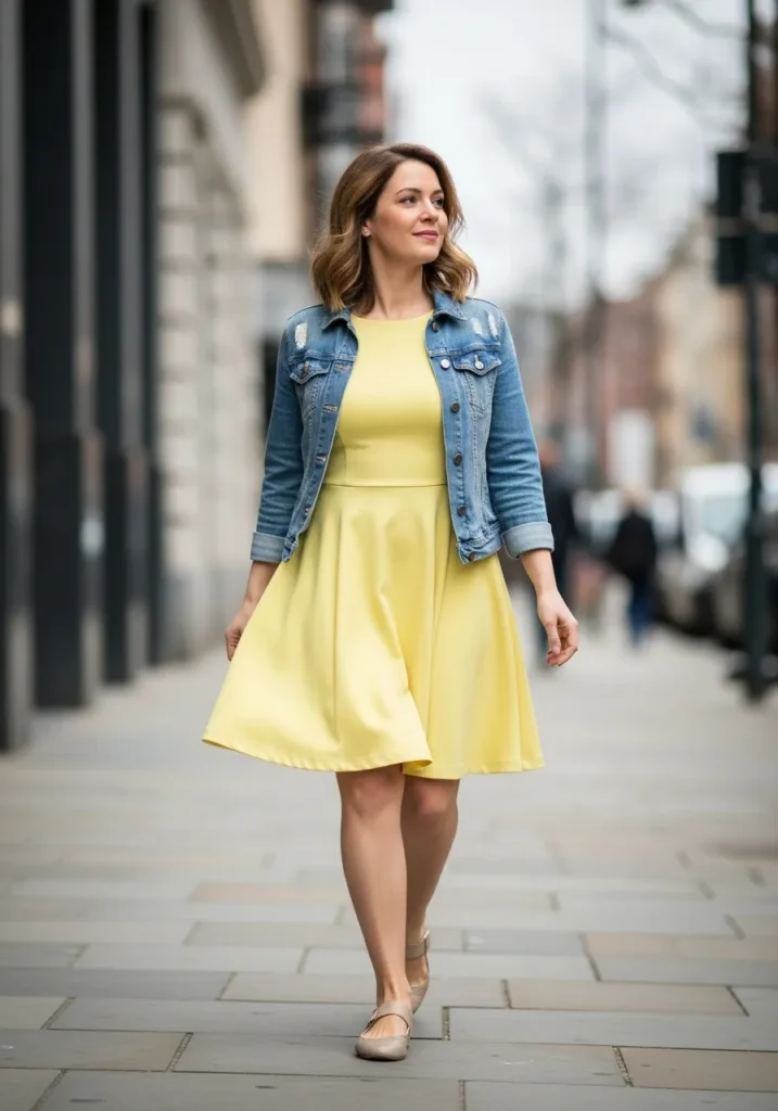 I reach for combinations like this when I want something bright that still feels relaxed. The denim adds an easy layer that makes the dress feel more everyday friendly. The yellow color lifts my mood immediately and feels perfect for Easter morning.