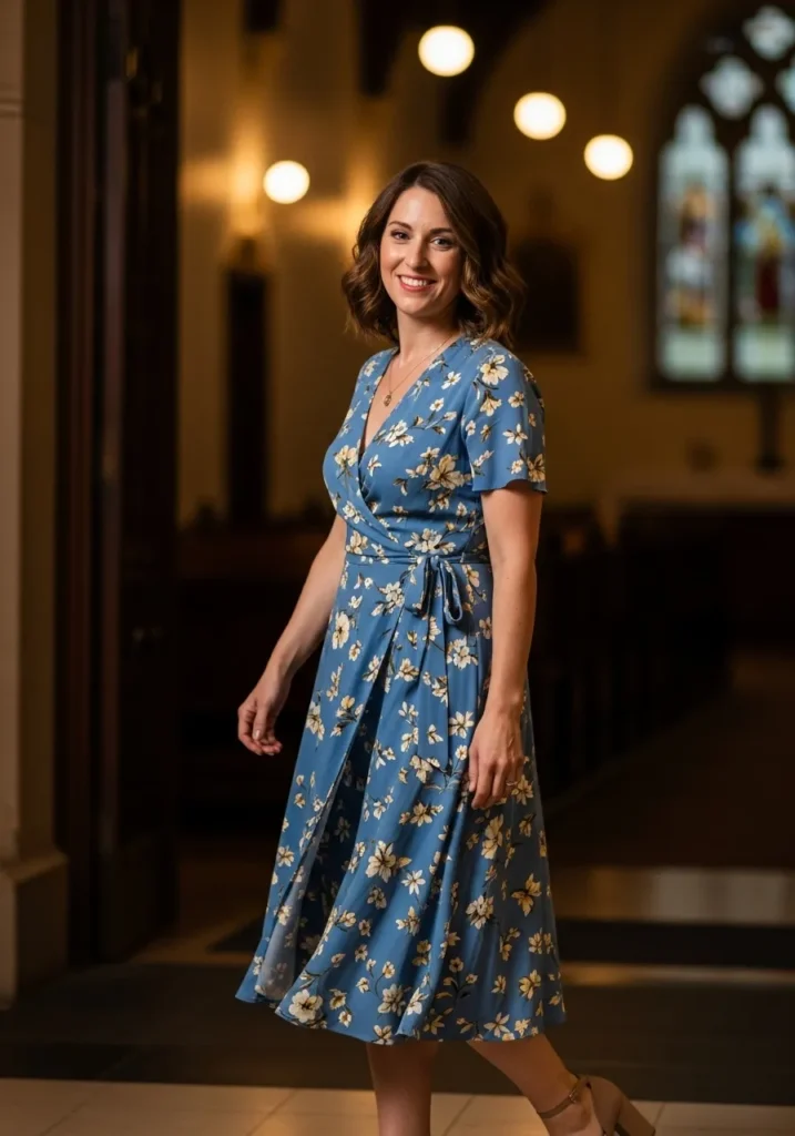 I love how this kind of dress gives me instant confidence. The fit feels easy and the print makes the outfit look thoughtful even when the morning feels rushed. It keeps everything comfortable yet still church ready in the sweetest way.