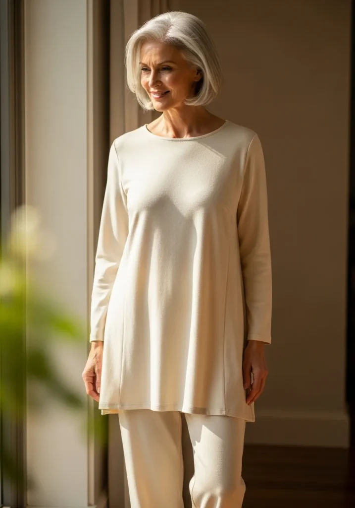 Cream Tunic and Trouser Set for Mature Style