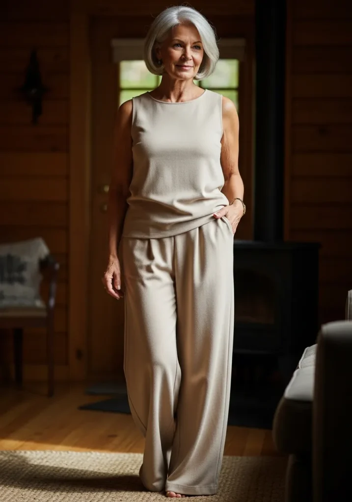 I enjoy outfits like this because they make me feel calm and comfortable. A matching set always looks more polished than it feels, and the soft flow of the pants gives so much ease. It is the kind of thing I reach for when I want comfort without losing style.