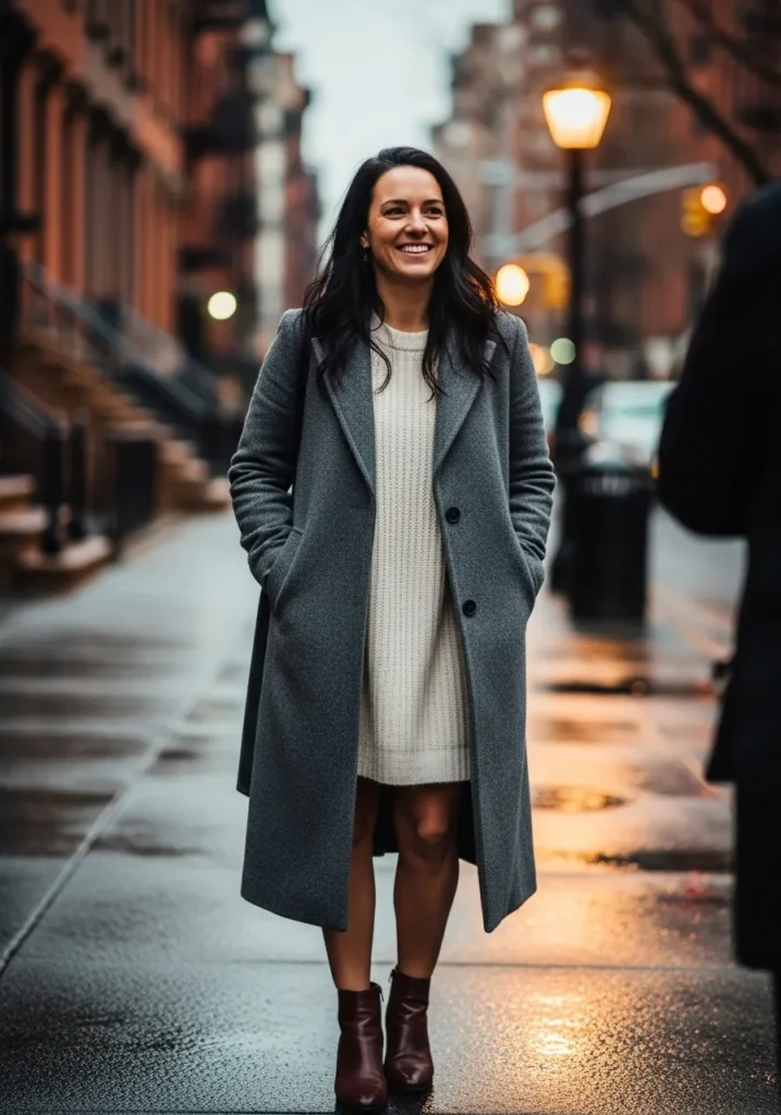 Gray Coat and Sweater Dress