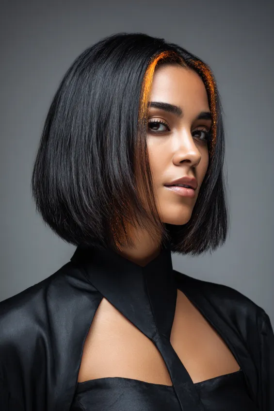 Sleek Bob with Fiery Orange Highlights