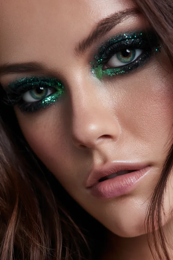 Enchanted Green Glitter Eye Makeup