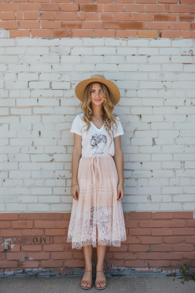 Graphic Tee and Blush Pink Lace Skirt for Boho Vibes