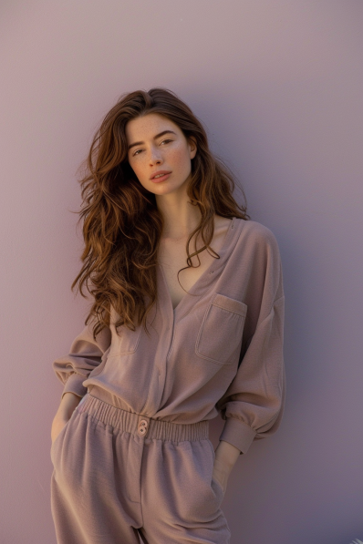 What I love about this look is how easy it is to wear while still looking chic. It’s comfy enough for a binge-watching session but stylish enough to make you feel good when you catch your reflection. Plus, the soft pastel color adds a touch of freshness, making it a go-to choice for those lazy nights that call for a little extra flair.