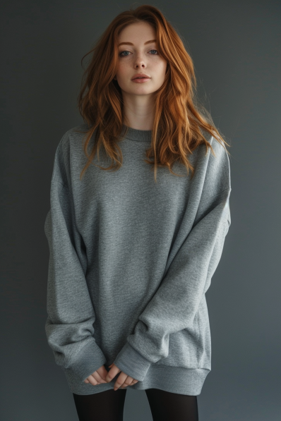 An oversized grey sweatshirt paired with classic black leggings is the ultimate go-to for a relaxed movie night at home. The roomy fit of the sweatshirt brings all the cozy vibes, while the leggings keep things sleek and comfy. This effortless combination is perfect for lounging, offering a laid-back yet stylish look that feels just right for a casual night in.
