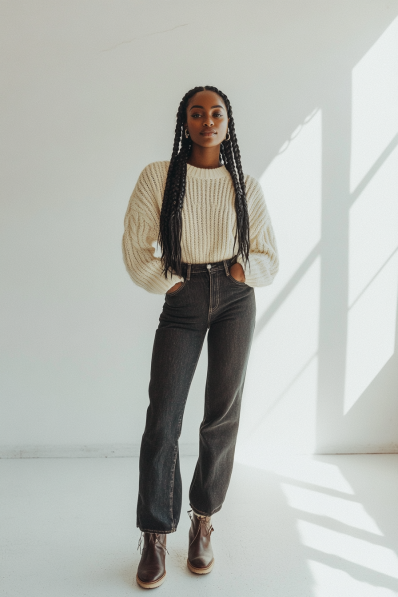 What I love about this outfit is how it manages to feel both laid-back and polished at the same time. It’s perfect for those casual dates where you want to feel comfortable but still look totally put-together. The chunky sweater gives off a cozy winter vibe, while the structured dark jeans and boots keep things sleek. Plus, it’s easy to throw on and head out the door without second-guessing your outfit choice — always a win in my book!