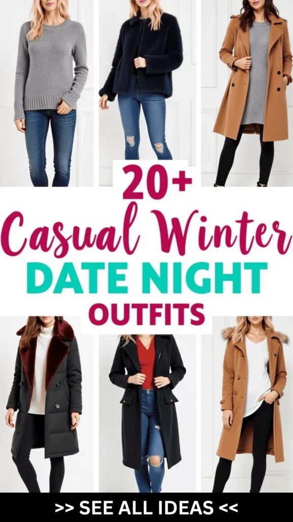 You’ll find everything from cozy knits to chic boots—basically all the winter vibes, without the frostbite. Let’s dive into these perfect casual winter date night looks that will have you feeling fab, even in freezing temps!