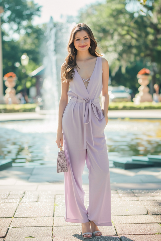 Elegant Lilac Jumpsuit with a Waist Tie