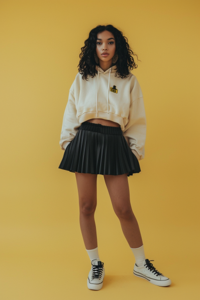 Cropped Hoodie With a Pleated Skirt and Sneakers