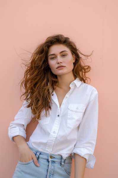 This timeless combo features a crisp white button-up shirt styled casually with light wash high-waisted jeans. The relaxed fit of the shirt and rolled-up sleeves give off an easy, carefree vibe, perfect for a casual date. It’s simple yet chic, offering versatility that works in almost any setting.