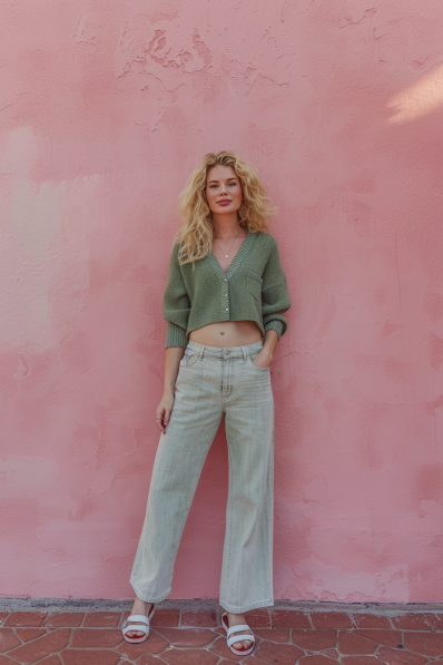 I really adore how this outfit feels fresh and playful. The cropped cardigan gives you a cozy yet stylish vibe, and those wide-leg jeans are effortlessly cool. Plus, sandals keep things light and breezy. It’s the kind of look that’s great for both comfort and charm—ideal for a casual, flirty date!