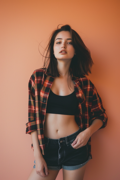 Casual Cool With a Plaid Shirt and Denim Shorts