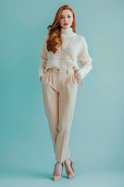 An outfit like this is ideal when you want to stay warm while still looking put-together. The neutral tones create a soft, timeless aesthetic that works for any occasion, and the mix of textures adds depth without feeling overwhelming. Plus, there’s just something so effortlessly chic about combining a cozy knit with tailored trousers—it’s comfortable, stylish, and perfect for cooler evenings.