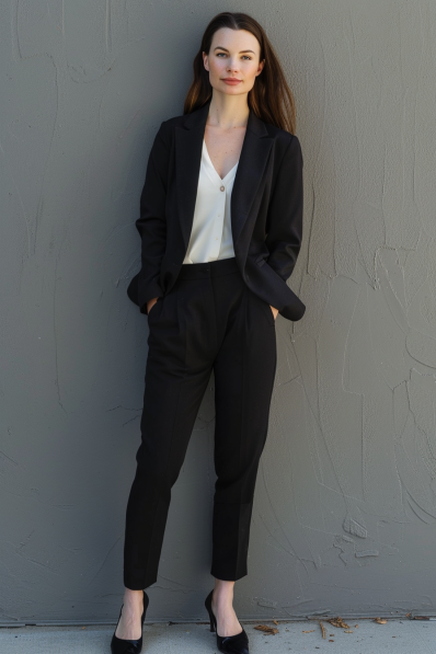 There’s something about a well-fitted suit that always feels empowering. It’s polished, sophisticated, and works for any occasion where you want to make a refined impression. The contrast of black and white keeps things simple yet stylish, and the minimal accessories allow the tailored fit to shine. It’s the kind of outfit that makes you feel put-together without being fussy.