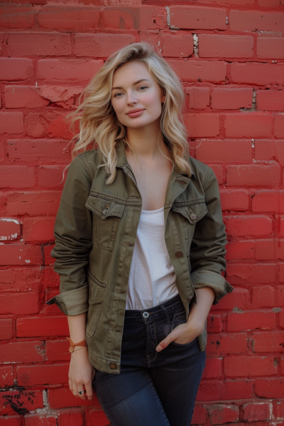 I love this look because it screams, “I’m chill, but I still put effort into this date.” The olive jacket adds just enough edge to keep it interesting, and pairing it with denim makes it super versatile. Honestly, this is the kind of outfit that says you’re ready for anything—whether it’s grabbing coffee or strolling through a cute local market. Plus, that olive green? It’s universally flattering!
