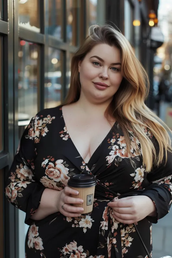 I’m totally in love with this outfit! The wrap dress is always a go-to for a reason—it’s comfortable, flattering, and never goes out of style. The floral print adds such a timeless, romantic feel, while the dark background makes it easy to pair with different accessories. I can totally see this dress being dressed up or down—add some heels for a chic brunch or wear sneakers for a more laid-back look. It’s feminine, effortless, and perfect for making any day feel a little extra special!