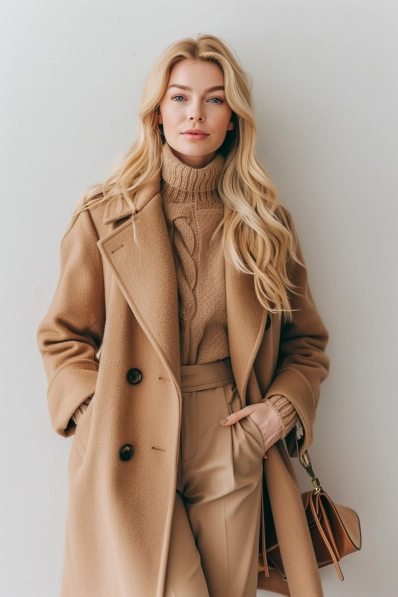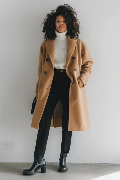 I’m loving the effortless chic vibe of this outfit. It’s simple but so well-executed—the camel coat instantly elevates the whole look, and the turtleneck makes you feel like you’re wrapped in a warm hug (in the best way possible!). What I really appreciate here is how versatile this look is. It’s the kind of outfit you can wear to a casual coffee date, but it also wouldn’t feel out of place at a more sophisticated dinner. Plus, those chunky boots? They’re practical and stylish, which is always a win for winter!