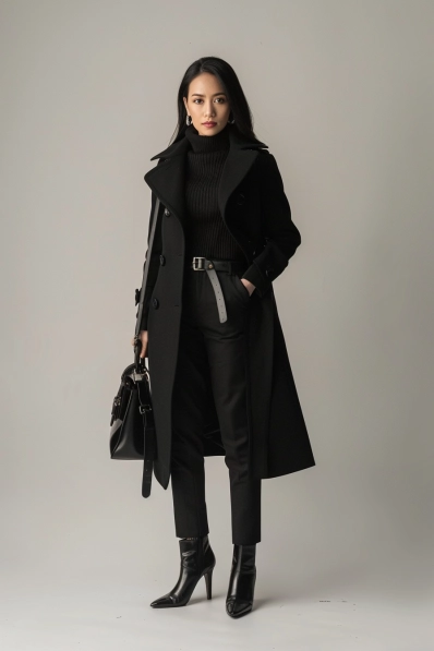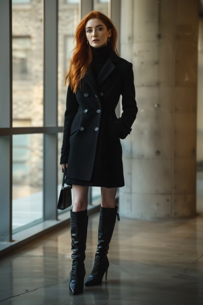 What I adore about this outfit is its timeless appeal. You can’t go wrong with an all-black look, especially when the pieces are as classic as these. The double-breasted coat has a commanding presence, while the boots add just the right amount of drama without going overboard. It’s sophisticated yet modern, and the whole vibe is subtly powerful. This is the kind of outfit that makes you feel confident, like you’re ready to take on the night—and look fabulous doing it!