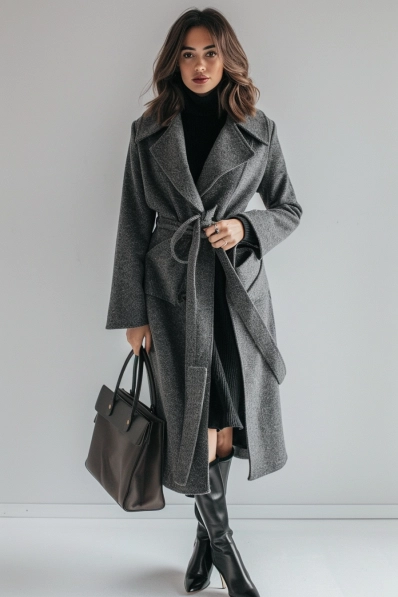 What I love most about this outfit is how effortlessly put-together it feels. The gray coat is not just practical for cold weather; it’s a statement piece that turns heads. The belted detail gives it a feminine touch, and the overall vibe is understated yet totally stylish. The combination of textures between the soft coat and sleek boots makes it feel luxurious without being over-the-top. Plus, I’m a sucker for an oversized handbag—practical and chic. This is the perfect look for those days when you want to feel warm and fabulous at the same time!