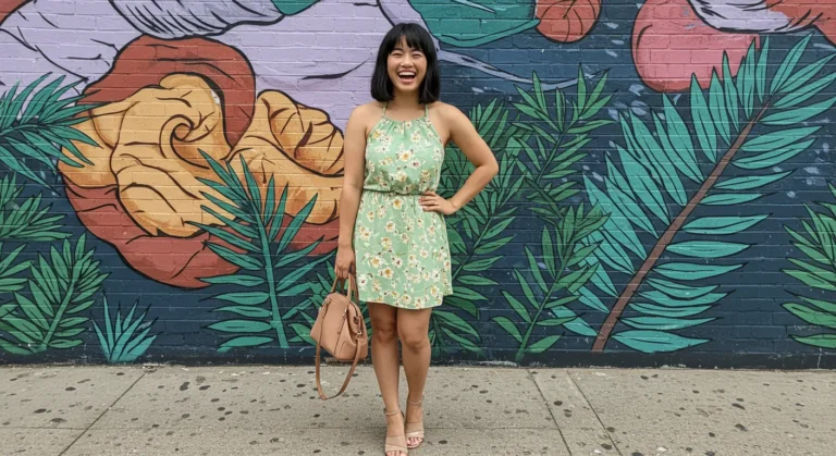 I absolutely adore how fresh and fun this outfit looks! The soft green hue is so refreshing and totally perfect for summer. The floral pattern adds a playful, youthful touch while keeping it stylishly simple. This dress is one of those pieces you can wear and feel effortlessly chic without much thought, and I love how it pairs so well with the neutral accessories. It’s ideal for those days when you want to look cute but keep things easy and comfortable. It’s truly a dress that makes you feel as vibrant as the summer season itself!