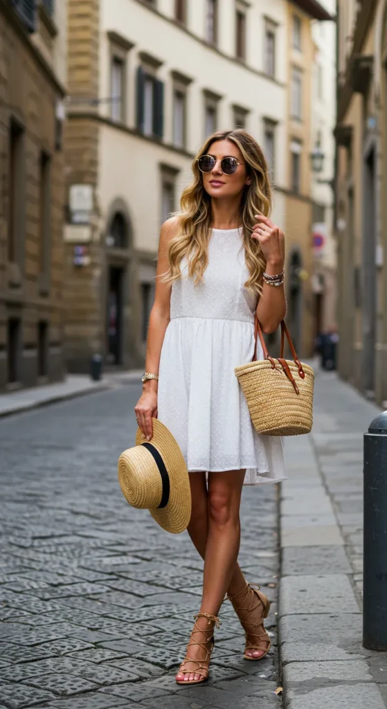 I absolutely love how this outfit balances elegance with comfort. The soft, airy fabric of the dress makes it perfect for hot summer days, while the chic accessories elevate it to something special. Plus, the easygoing vibe just makes it ideal for any European summer adventure, whether you’re sightseeing in a historic city or sipping coffee at a café. It’s the kind of look that’s simple yet undeniably stylish!