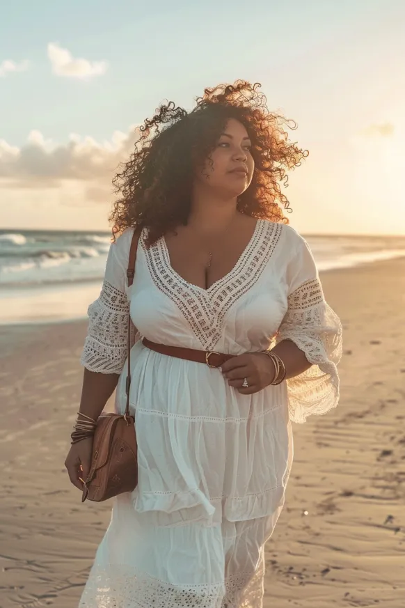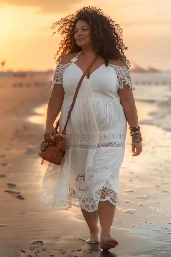I absolutely adore how this dress combines bohemian vibes with beach-ready elegance. The way it flows in the wind is just dreamy, and the lace details make it feel so special. It’s one of those dresses that looks great with minimal effort—perfect for when you want to feel both beautiful and comfortable at the same time. Whether you’re walking along the shore or enjoying a sunny day out, this look will have you feeling stylish and carefree.