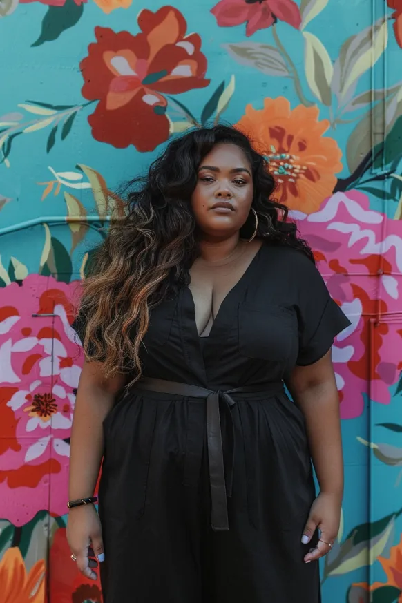 I absolutely adore this jumpsuit because it’s both trendy and timeless. It’s perfect for so many different events—whether you’re heading to a brunch date, a day of sightseeing, or just out for a casual hangout. I love how the belt adds structure to the relaxed fit, creating a balanced look. And honestly, who doesn’t feel a little extra fabulous in black? It’s such a flattering, figure-loving outfit that works on so many levels.