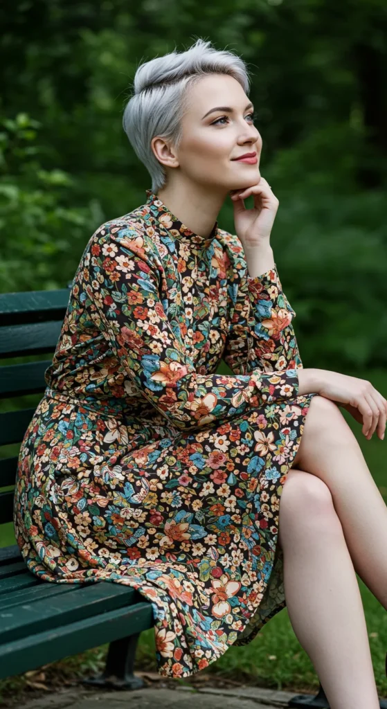 Okay, I’m really into this floral print! It’s so eye-catching and fun. Even though it has long sleeves and a high neck, which offers amazing coverage, the cheerful pattern keeps it from feeling too heavy for warmer weather, especially if the fabric is nice and light. I think it’s a fantastic way to rock a modest look that’s still bursting with personality and color! Perfect for a day when you want coverage but still want to feel summery and bright.