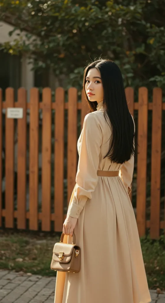 Okay, I’m seriously obsessed with this look! It’s just so effortlessly elegant, right? Even though it offers full coverage, the light color and flowy fabric keep it feeling appropriate for warmer weather, maybe a breezy evening or an event where you want to look put together. I think it proves modest dressing can be incredibly chic and timeless!