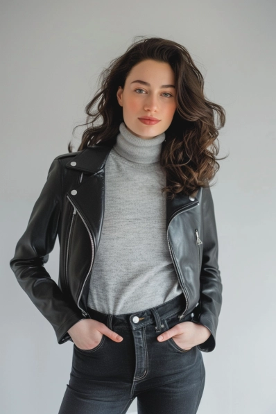 Sleek and Edgy in a Leather Jacket and Turtleneck