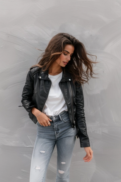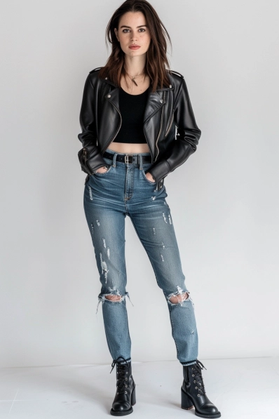 Edgy Leather Jacket and Distressed Jeans Combo