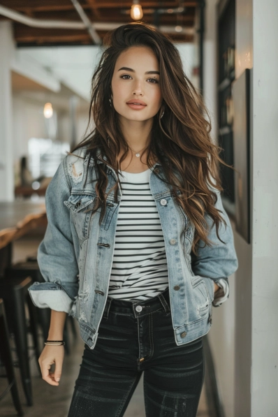 Stripes and Denim Jacket for Effortless Cool