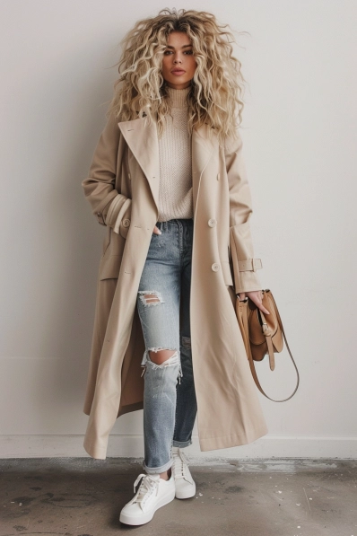 Cozy Layers with a Trench Coat and Ripped Jeans