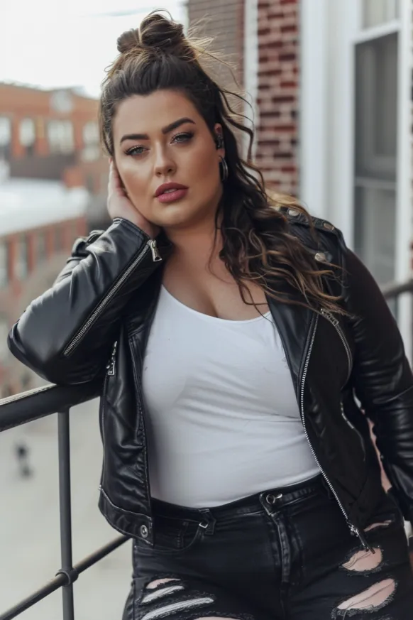 I absolutely love how this outfit combines edginess with comfort. The black leather jacket is the star of the show, making the whole outfit look effortlessly cool. The ripped jeans keep it casual, but the whole look still feels put together and ready to rock. It’s a perfect choice for anyone who wants to show off their style with a little attitude, all while staying comfy enough to enjoy the night. This is definitely an outfit that turns heads and makes a statement!