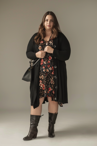 What I love about this outfit is how easy it is to wear while still looking put-together. The floral dress is fun and flirty, while the cardigan adds an element of coziness that’s perfect for when the temperature drops. And those boots? They’re just the right amount of edgy, making this look feel a little more dressed up without losing that laid-back vibe. It’s an ideal outfit for when you want to feel comfortable but still look like you’ve put in some effort.
