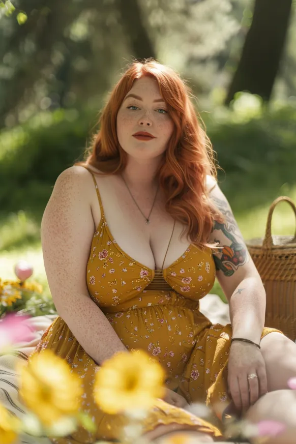 I love this look so much because it’s simple but stunning. The color is rich and warm without feeling heavy, and the floral pattern just makes it feel extra sweet. It’s one of those outfits that makes you feel feminine and free all at once. I’d totally wear this for a summer picnic, a quiet day outdoors, or just when I want to feel like the main character in a countryside romance.