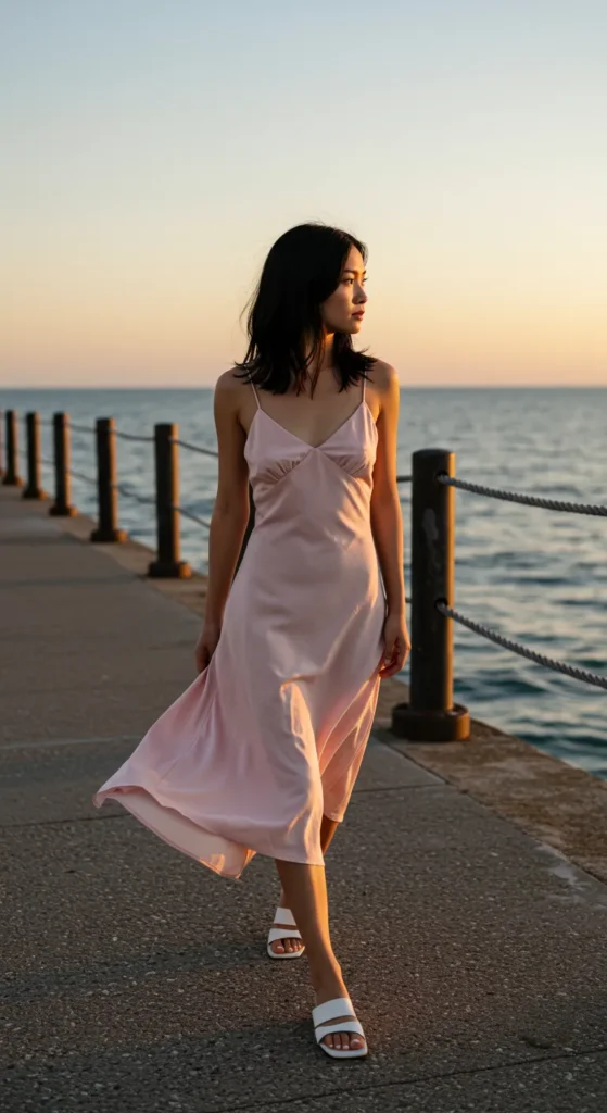 Honestly, I think this is such a stunning and versatile look for summer 2025. Slip dresses are just everything because they feel amazing on, keep you cool, and can be styled in so many ways. This soft pink is incredibly flattering and perfect for warm evenings or sunny days. It’s proof that sometimes, less really is more! You get that elegant feel without any effort, perfect for a sunset walk or a relaxed dinner date.