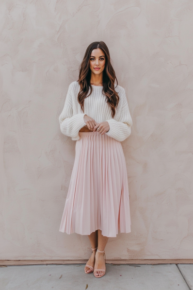 What I adore about this outfit is how effortless it feels. The knit sweater makes it snug and approachable, while the pastel pink skirt keeps it romantic and sweet. It’s perfect for those Valentine’s plans that lean more toward intimate and laid-back but still call for a polished vibe. Plus, who doesn’t love an outfit that’s comfy and cute? It’s like wearing a warm hug with a stylish twist!