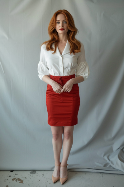 This timeless pairing of a crisp white blouse and a bold red pencil skirt is chic, polished, and perfect for Valentine’s Day. The blouse’s slightly puffed sleeves add a touch of softness, while the fitted pencil skirt creates a sleek, flattering silhouette. The bold red adds that festive, romantic pop of color, and nude pumps keep the look elegant and balanced.