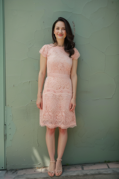 What I love about this dress is how it strikes that perfect balance between simple and special. The lace gives it such a timeless vibe, and the blush tone feels like the color of love itself—subtle yet impactful. It’s one of those outfits that says, “I didn’t try too hard, but I look amazing anyway.” It’s perfect for an evening when you want to feel beautiful without being over the top.