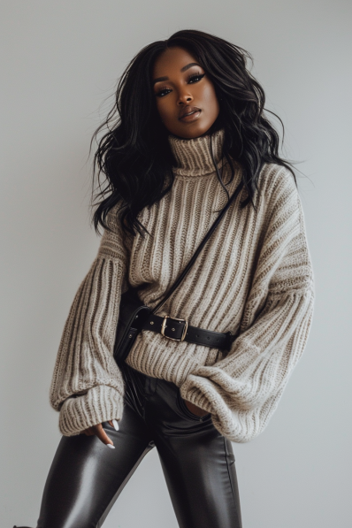 Chunky Turtleneck and Edgy Leather Combo