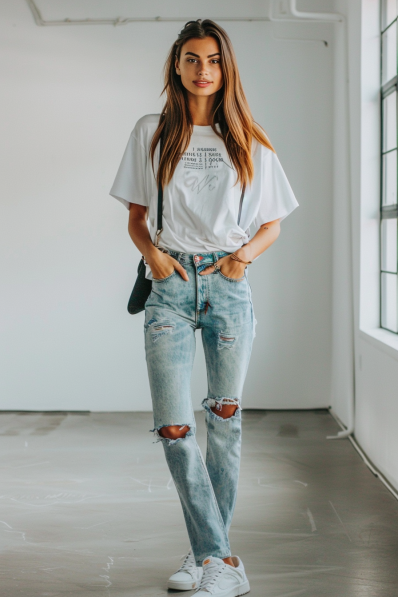 Effortlessly Cool with a Graphic Tee and Ripped Jeans