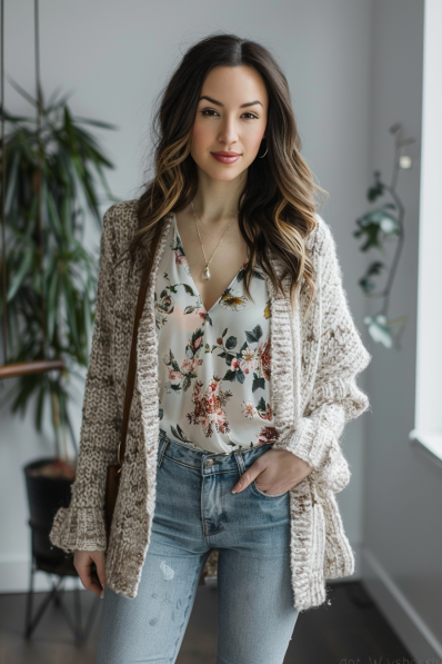 Floral Blouse and Cozy Cardigan Combo