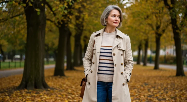 I think this outfit nails the balance between casual and chic. The stripes add personality, the trench brings structure, and the earthy tones make it ideal for autumn. It’s such a flattering mix that feels stylish without ever being overdone.