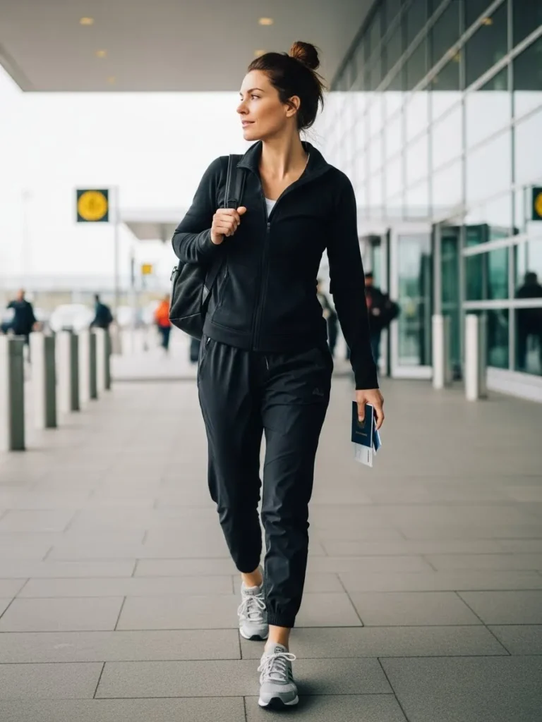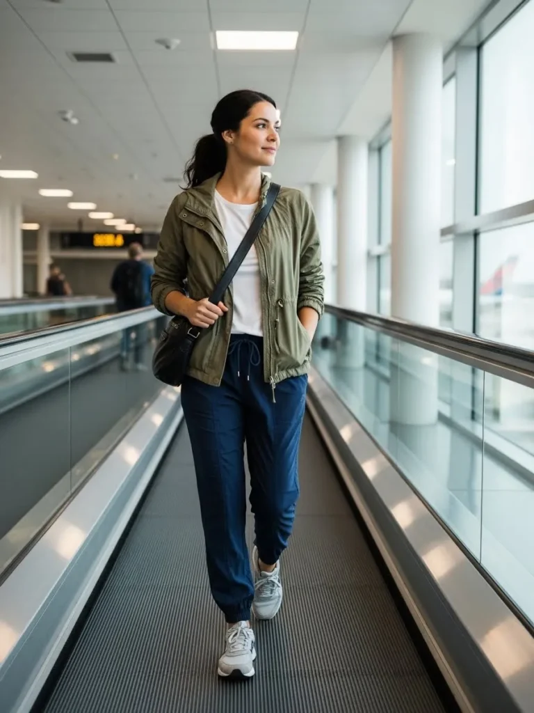 I reach for looks like this when I want that perfect mix of relaxed and put together. The jacket gives a little polish and the joggers keep me comfortable no matter how long the travel day becomes. It always feels like a smart choice when I want to move freely without looking sloppy.
