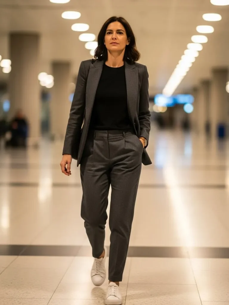 I enjoy choosing a tailored look when I want to feel sharp during a travel day. The sneakers make it practical and the suit does the rest. It gives me that little boost of confidence that makes navigating airports feel a bit smoother.